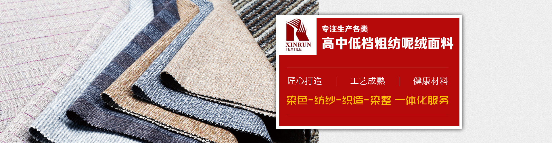 上海鑫潤(rùn)紡織品有限公司是一家從事開(kāi)發(fā),生產(chǎn),銷(xiāo)售為一體的毛紡面料公司,公司生產(chǎn)各類(lèi)高中低檔粗紡呢絨面料,并下轄控股毛紡廠3家,擁有先進(jìn)的生產(chǎn)設(shè)備和的管理體系,不僅在國(guó)內(nèi)市場(chǎng)享有良好地信譽(yù),而且產(chǎn)品遠(yuǎn)銷(xiāo)美國(guó),歐洲,俄羅斯,韓國(guó),日本等不同國(guó)家,贏得了國(guó)外市場(chǎng)的一致好評(píng)。憑借優(yōu)良的品質(zhì),良好的信譽(yù),我公司還是ZARA,H&M,C&A,JACK&JONES,MANGO,TARGET,PROMODE,ORSAY等國(guó)外知名品牌的供應(yīng)商。